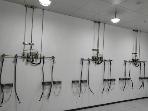 1.氣瓶間內壓差調節器開關按鈕與實驗操作辦公室的氣路消費終端中所采用SS316LBA管去進行連接,管網內外表光亮度為Ra<0.4umBA級管網。